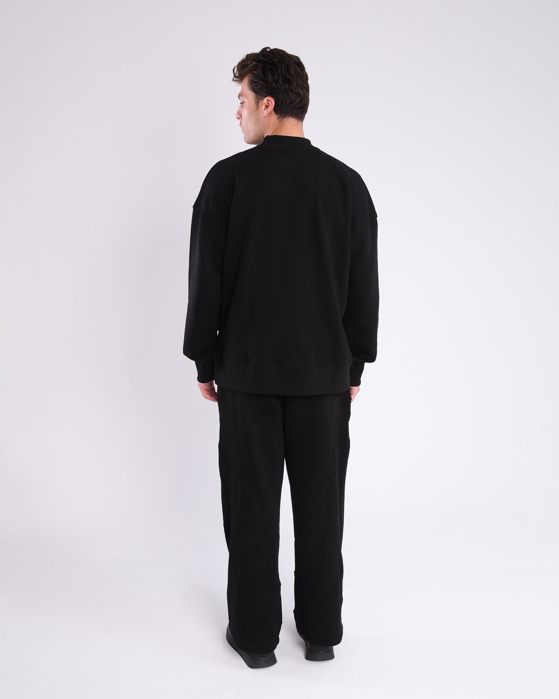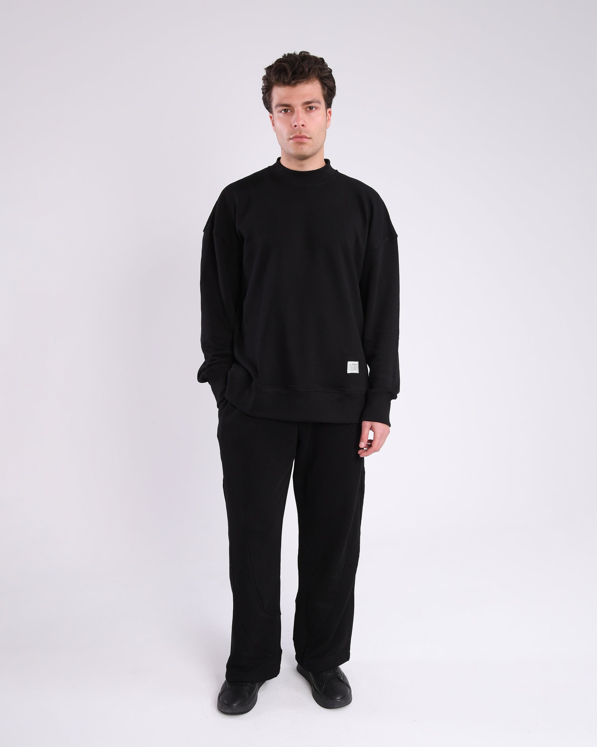 100% COTTON RELAXED FIT CREW IN BLACK. CLOTH BRANDED PATCH KNITTED AT THE BOTTOM LEFT.
