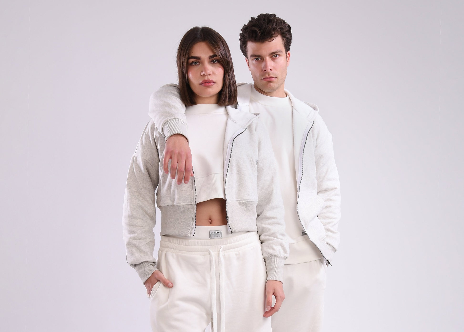 100% COTTON-FLEECE RELAXED FIT LIGHT GREY JACKET. CLOTH BRANDED PATCH KNITTED AT THE BOTTOM LEFT.