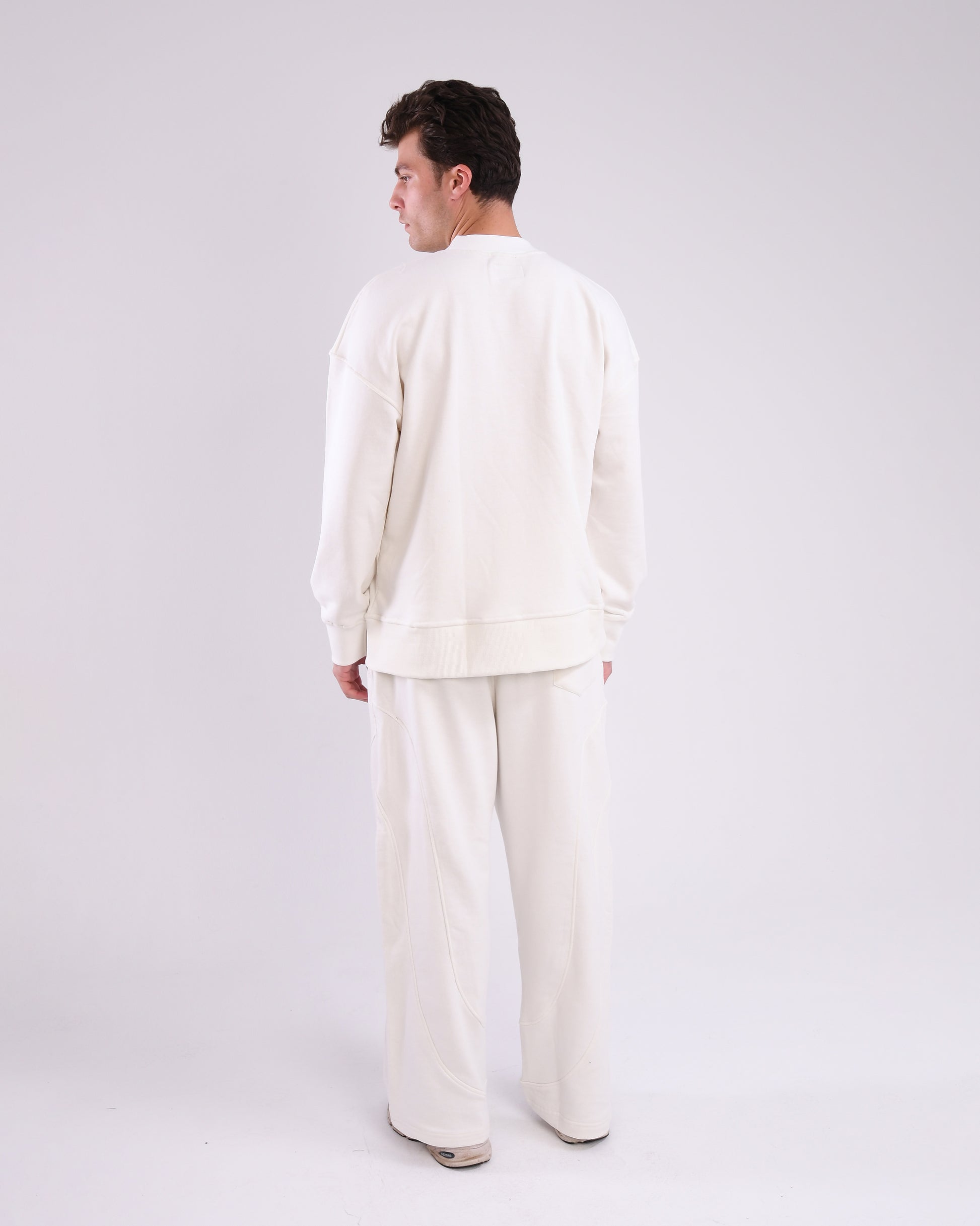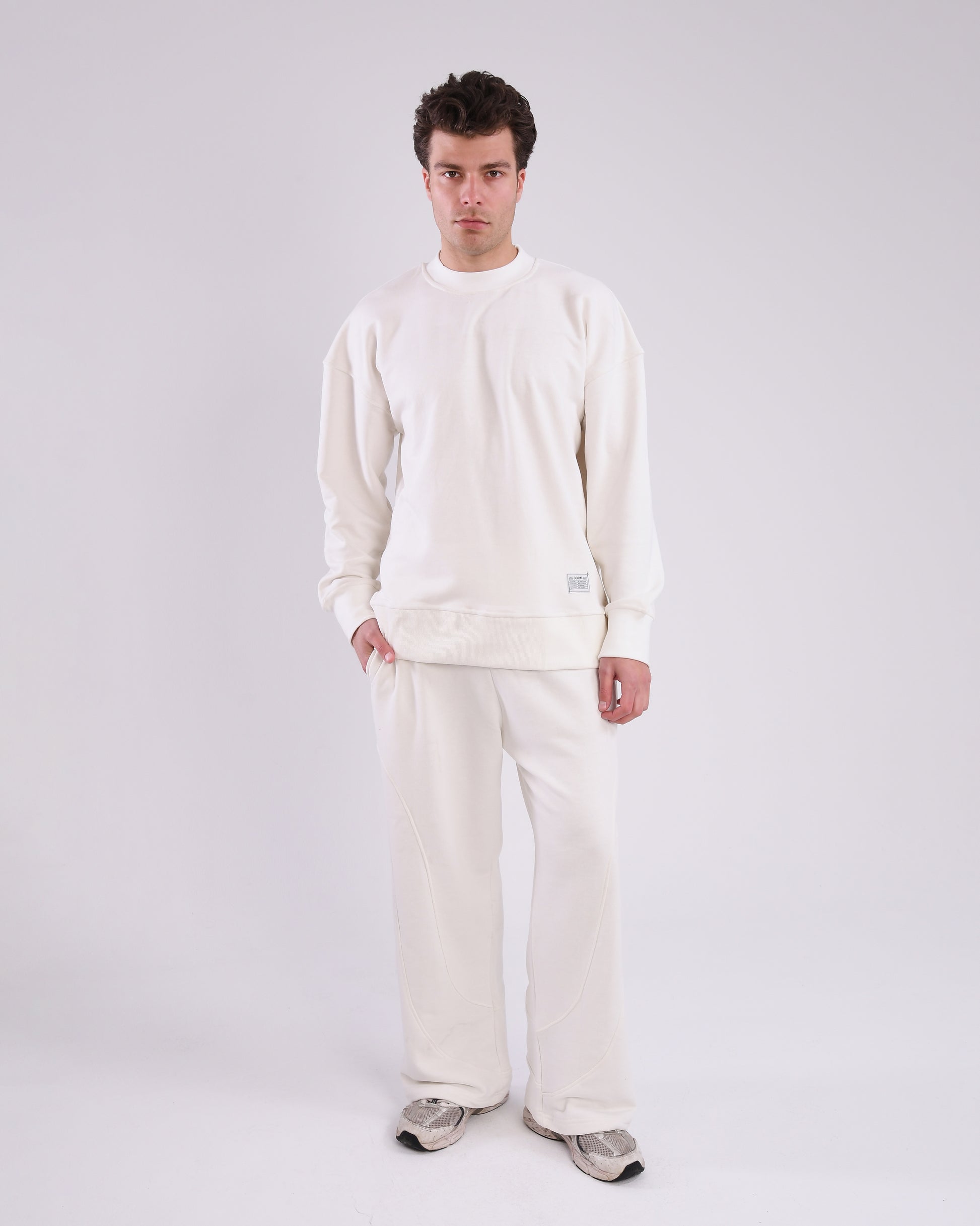 100% COTTON RELAXED FIT CREW IN OFF-WHITE. CLOTH BRANDED PATCH KNITTED AT THE BOTTOM LEFT.